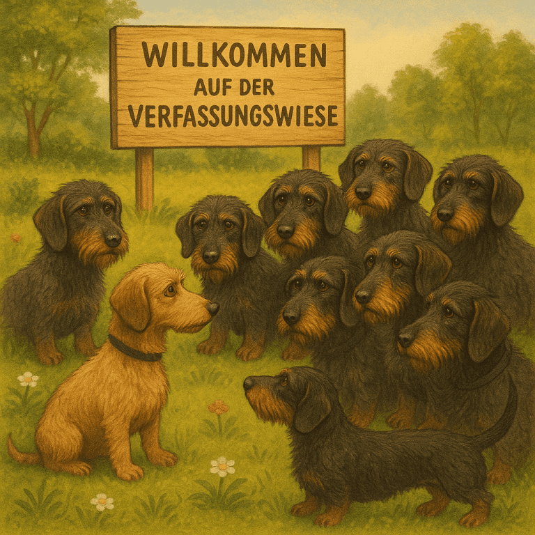 Es war ein kühler Herbstmorgen, als die Dackelbande sich auf der Verfassungswiese traf. Der Nebel hing tief über den Feldern,...