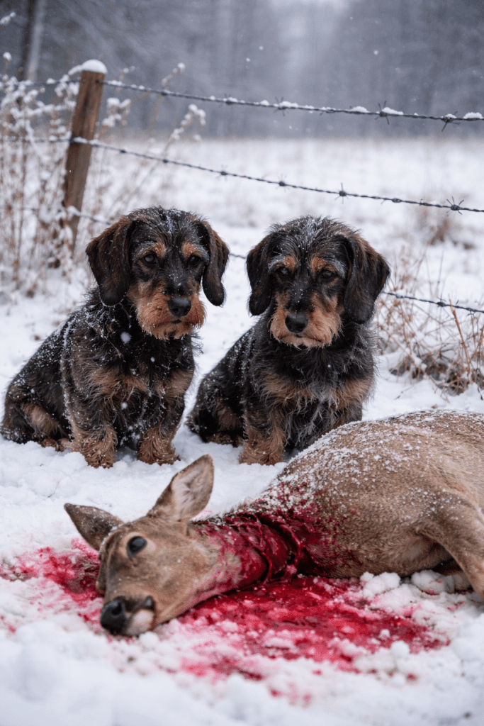 Im Schnee davor lag ein Schmaltier.